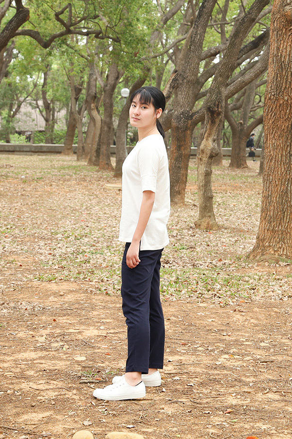 ➤富有彈性有機棉平紋針織面料,讓身體得以完全伸展