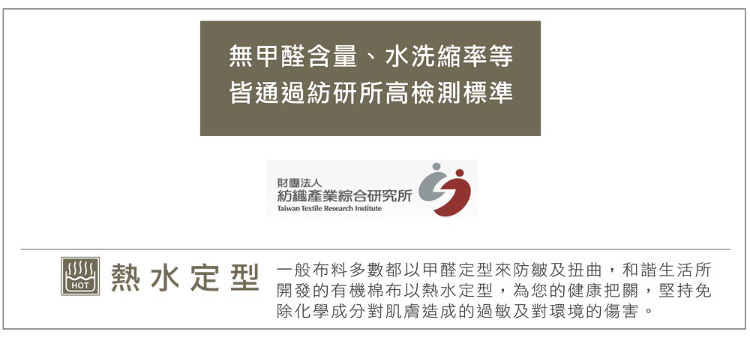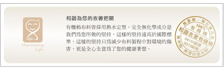 • GOTS全球有機紡織認證、OCS100有機棉含量100%認證