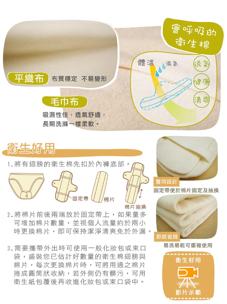 布衛生棉|專為台灣潮濕悶熱氣候設計,我們選用無污染、無化學纖維與藥劑處理的100%有機棉,用最接近自然的方式呵護女性敏感肌膚。特別的平整車縫邊緣,幾乎感受不到存在,讓妳整日自在行動,無需擔心不適與摩擦感。