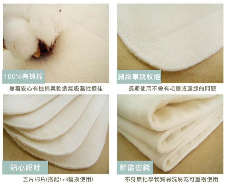 •  棉布吸濕性佳不會有回滲黏膩感